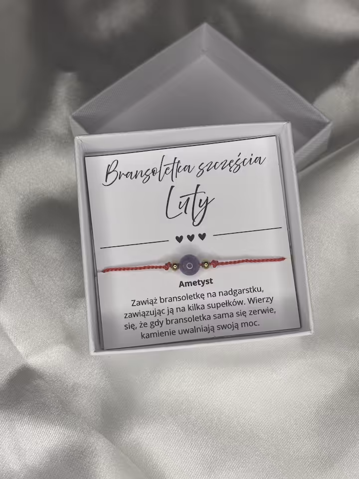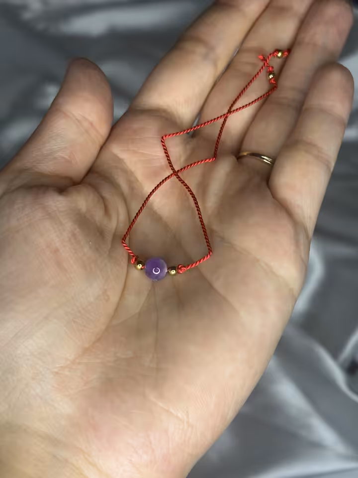 Unikatowa, ręcznie zawiązana na jedwabnej nici bransoletka z fioletowym ametystem – kamieniem mądrości i wewnętrznego spokoju. Dla osób urodzonych w lutym, którzy cenią intuicję i kreatywność. Jej głęboki fiolet uspokaja umysł, a naturalne kryształy dodają magicznego blasku. To idealny talizman na stresujące dni – pomaga odnaleźć równowagę i inspirację.