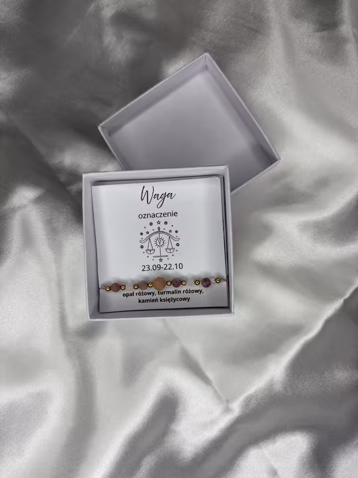 Każda bransoletka została ręcznie zawiązana na wytrzymałym sznurku nylonowym, a regulację rozmiaru zapewnia makramowe wiązanie (węzeł przesuwany), dzięki czemu idealnie dopasuje się do nadgarstka. Kamienie dobrane są pod energetykę danego znaku zodiaku, a ich połączenie tworzy harmonijną, ochronną i wzmacniającą biżuterię.