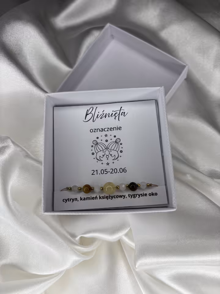 Każda bransoletka została ręcznie zawiązana na wytrzymałym sznurku nylonowym, a regulację rozmiaru zapewnia makramowe wiązanie (węzeł przesuwany), dzięki czemu idealnie dopasuje się do nadgarstka. Kamienie dobrane są pod energetykę danego znaku zodiaku, a ich połączenie tworzy harmonijną, ochronną i wzmacniającą biżuterię.