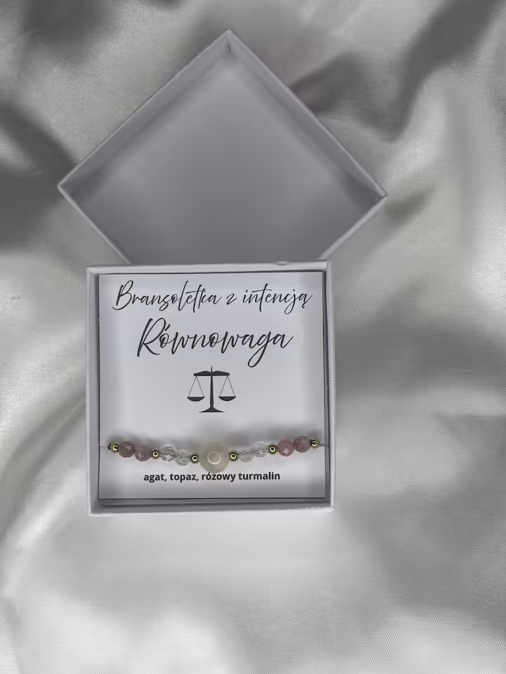 ️ Bransoletka Równowaga (agat + topaz + różowy turmalin)