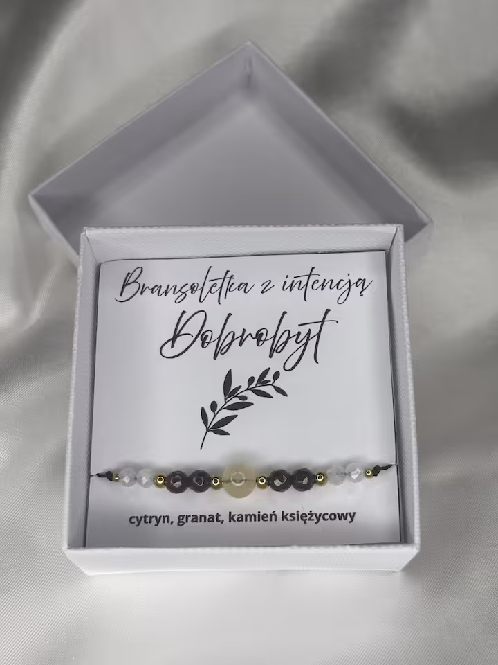 Bransoletka Dobrobyt (cytryn + granat + kamień księżycowy)